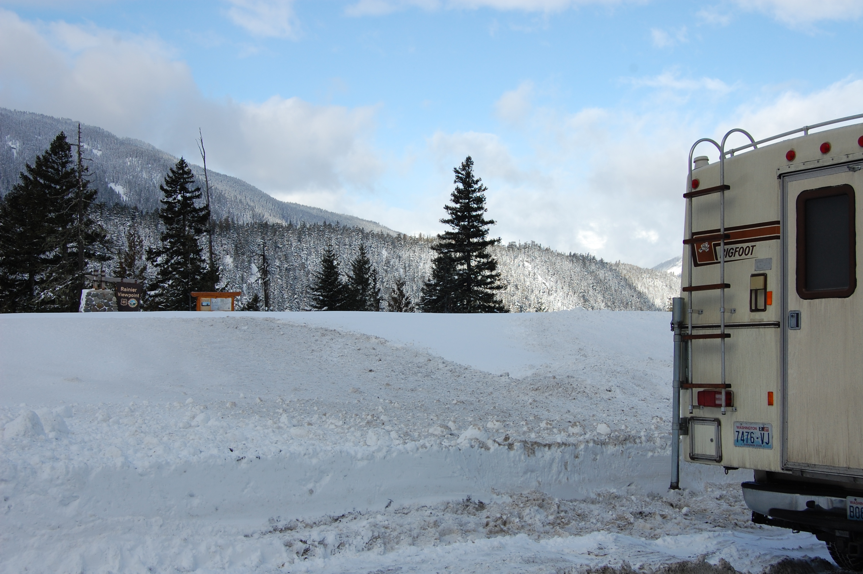 It’s winterish, and the viewpoint is FULL of snow. But, with a TC (truck camper to ya’all), one can pull off the road anywhere for eats and relaxing.