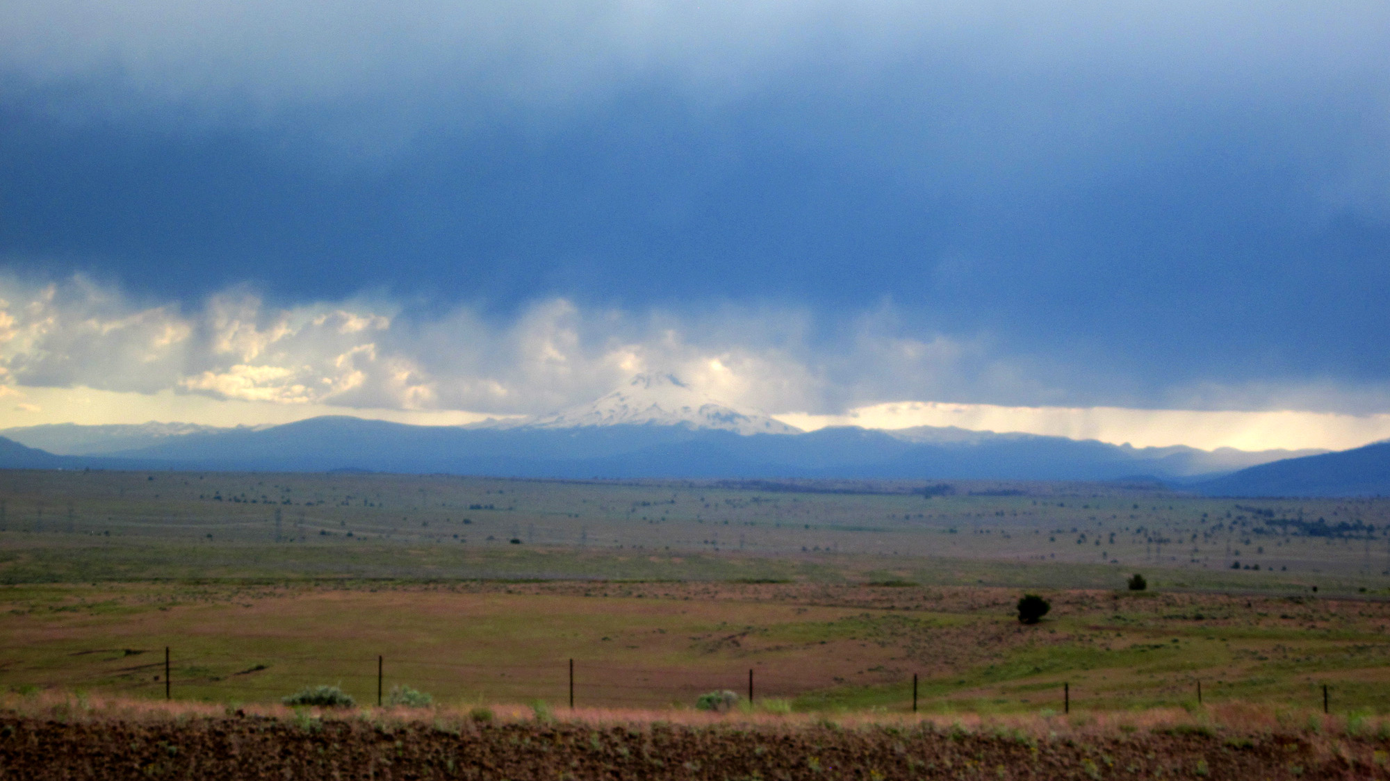 … into Oregon. Highway 97 crosses the Columbia at Biggs Junction, then climb up to 3,000′ to the high plains filled with sagebrush, bunchgrass and a few junipers. Passing through Shaniko, we’ll head down to Mt. Shasta.