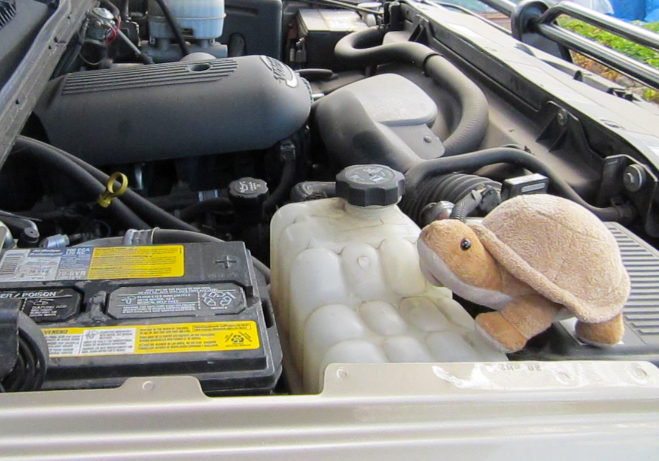 Power up! This is a boring post about power … electric power for my driver. It all starts with an extra battery up front in his truck, which is separate from the battery for the truck (in the upper right hand corner).