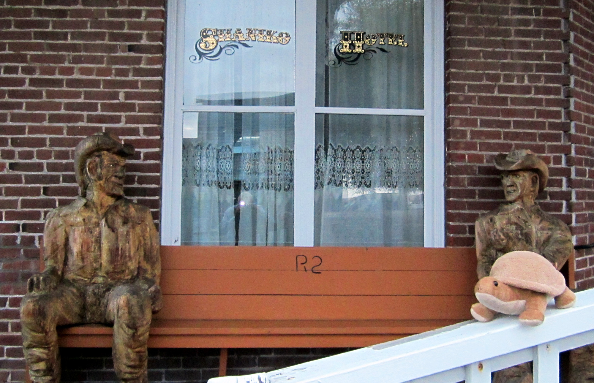 Too early to get gas, though. We’ll continue to Shaniko, amid the sagebrush and junipers … population fewer than 40 hearty westerners.