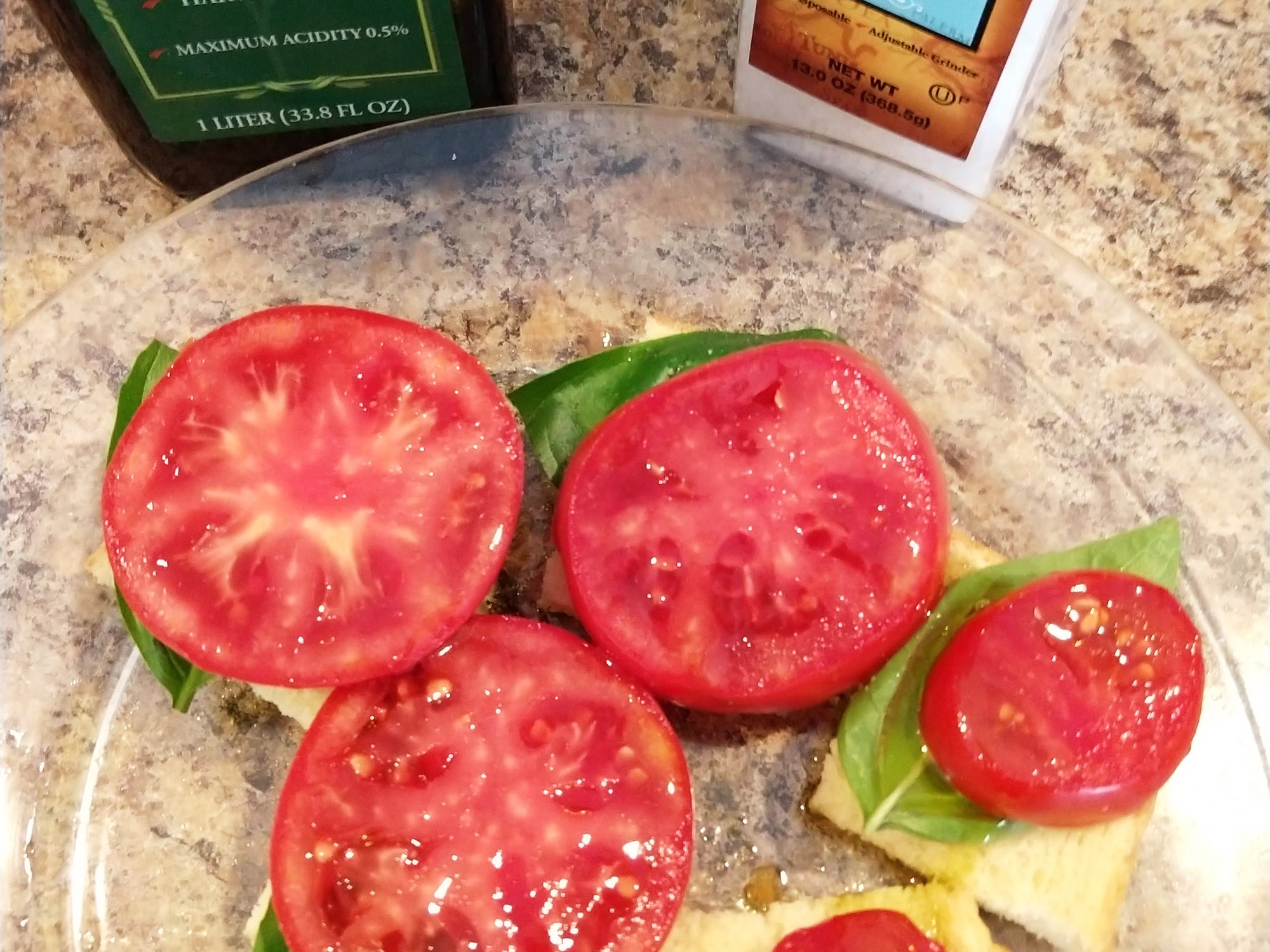 … or my driver cooks in our tiny home. A light touch with Wagyu brisket off of a friends grill, with our own style of bruschetta … garden tomatoes, garden hungarian peppers, sweet onion, chopped basil, heated over sourdough baguette drizzled with olive oil of course.