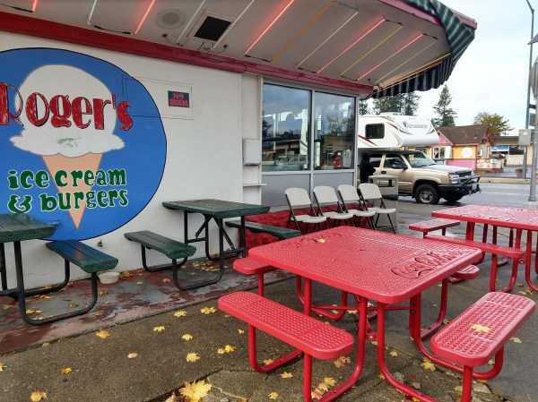 … then we head out to Rodgers Ice Cream (it’s a coooold autumn day) … no lines … and enjoy it in our tiny home. Rodgers is a new business, they started in 1940.