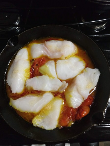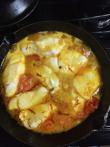 So, what’s for dinner? How about poached saffron wild cod with burst tomatoes?