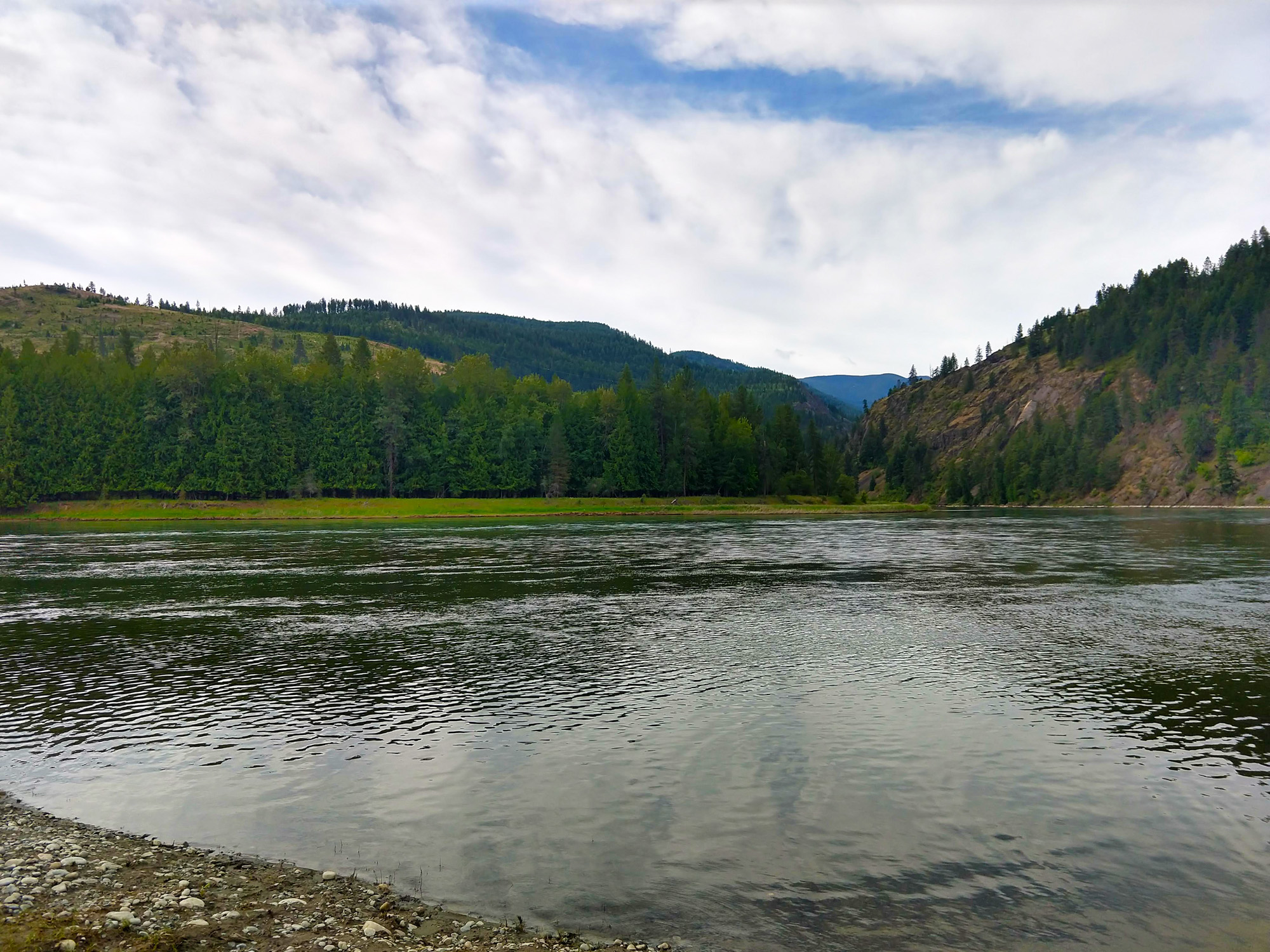 Two rivers meet. The Moyie River comes all the way from the Moyie Lake in beautiful British Columbia. It flows for about 100 miles. We’ve relaxed for a time on the shore of the Moyie River before. Very close to Meadow Creek ghost town. Nice.