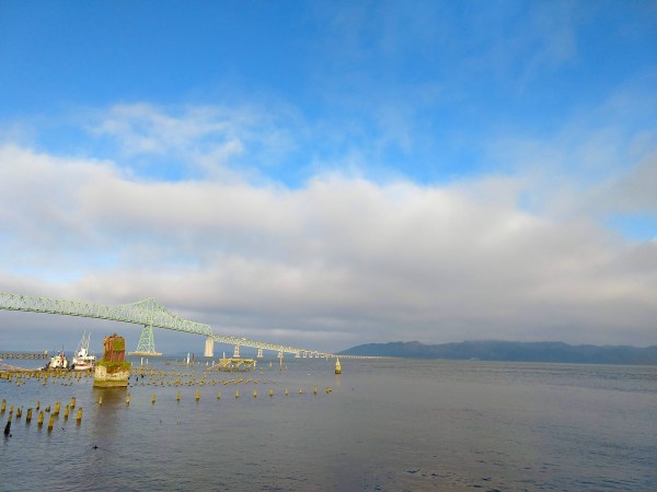 Lucky 13 indeed! Looking back from whence we came. The bridge below is the Astoria-Megler bridge, about 4 miles long and a treat to drive in the early morning!