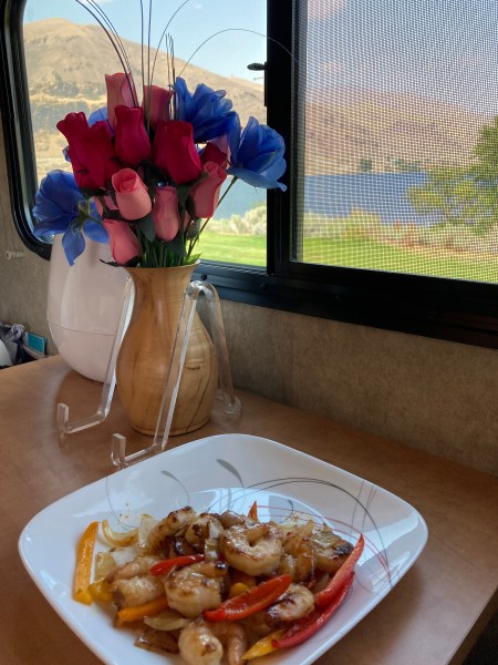 Later, in the early evening, along with a little bit of prawns, peppers and onion, it’s time to enjoy our destination.