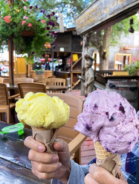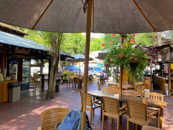 Finding a little western town in a 60 mile long glacial valley means it’s time to demount and “kick back.” Tortuga heartily approves!