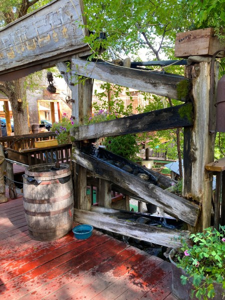 … and then listen to the water gushing down the sluice box … next to a full bowl that awaits any wandering dogs.